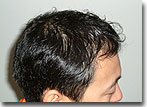 2〜3週間で小さな産毛が現れてきたのも、鏡で観察できました。 もうすでに、登頂に産毛が出ています。 |